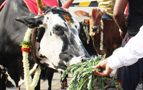 Cows are considered the most sacred animals. According to Vedic texts, all celestial beings reside in a cow. Thus the Holy act of feeding the cows is equivalent to feeding all the gods and goddesses. The scriptures say that it is very auspicious to feed a cow and it is one of the most sacred deeds to gain prosperity and happiness.